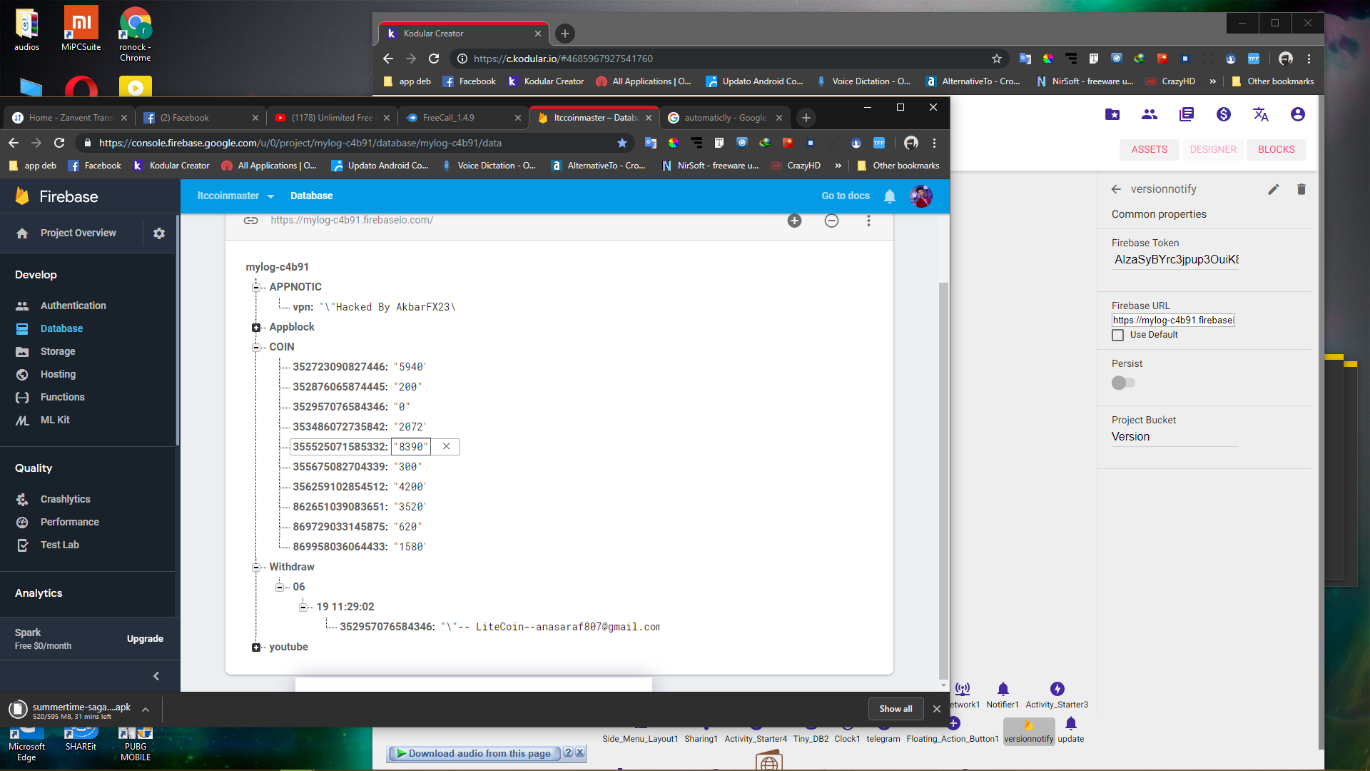 I assume he just dug in the apk and found your API token and firebase URL and then just edited the values. Might be wrong though.
