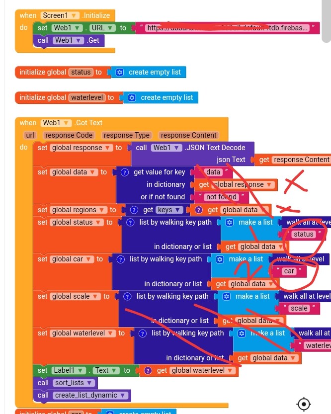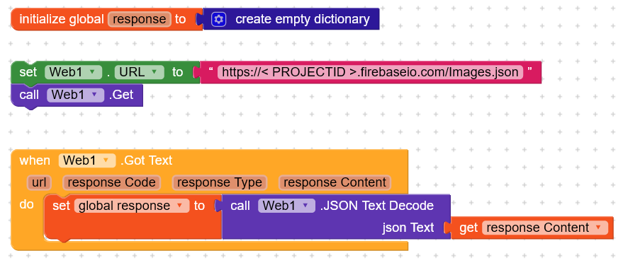 You see the logic behind in this is, . After using the web you will be getting your firbase items under the project images as a json and we are using the dictionary block to separate them into two list having the tag name of link and name.