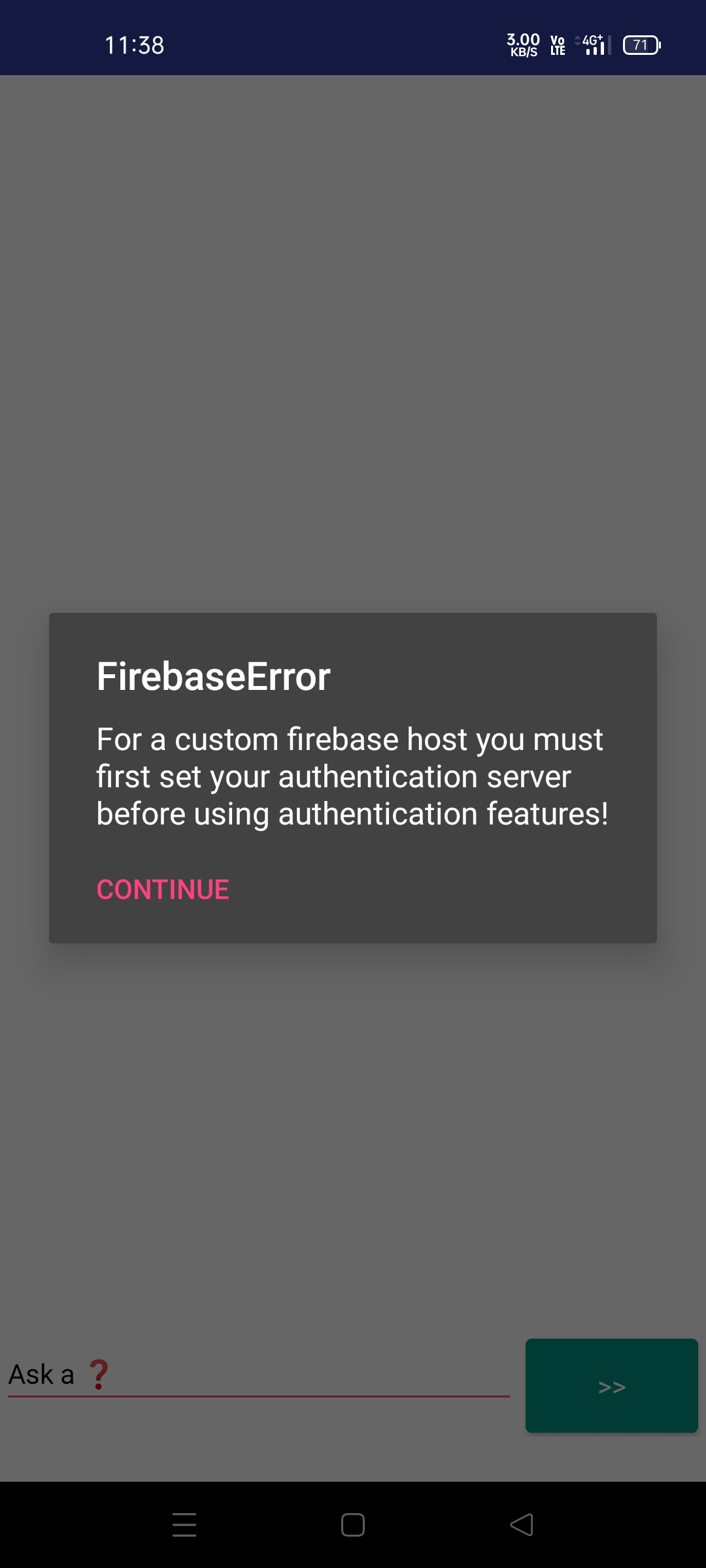 Error from Companion: For a custom firebase host you must first set your authentication server before using authentication features!