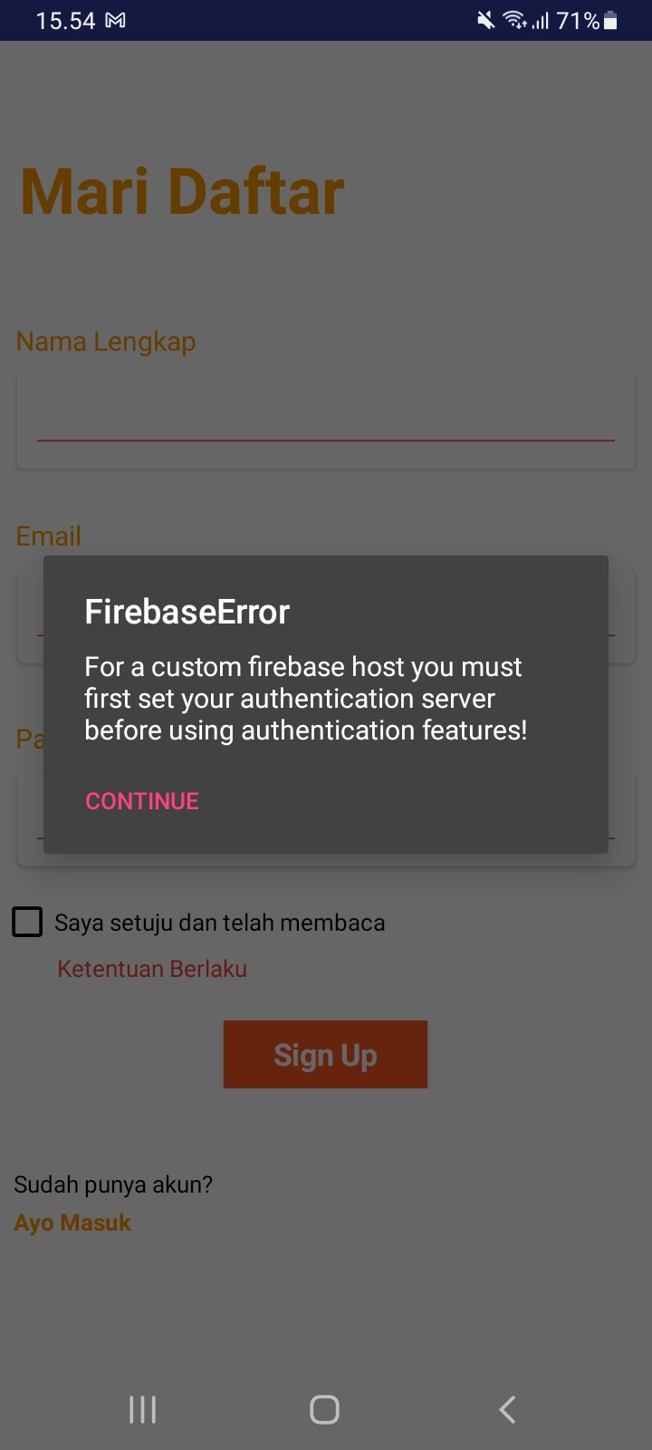 hello everyone, I want to ask why there is always a firebase error message in my project sign up? how to solve it?