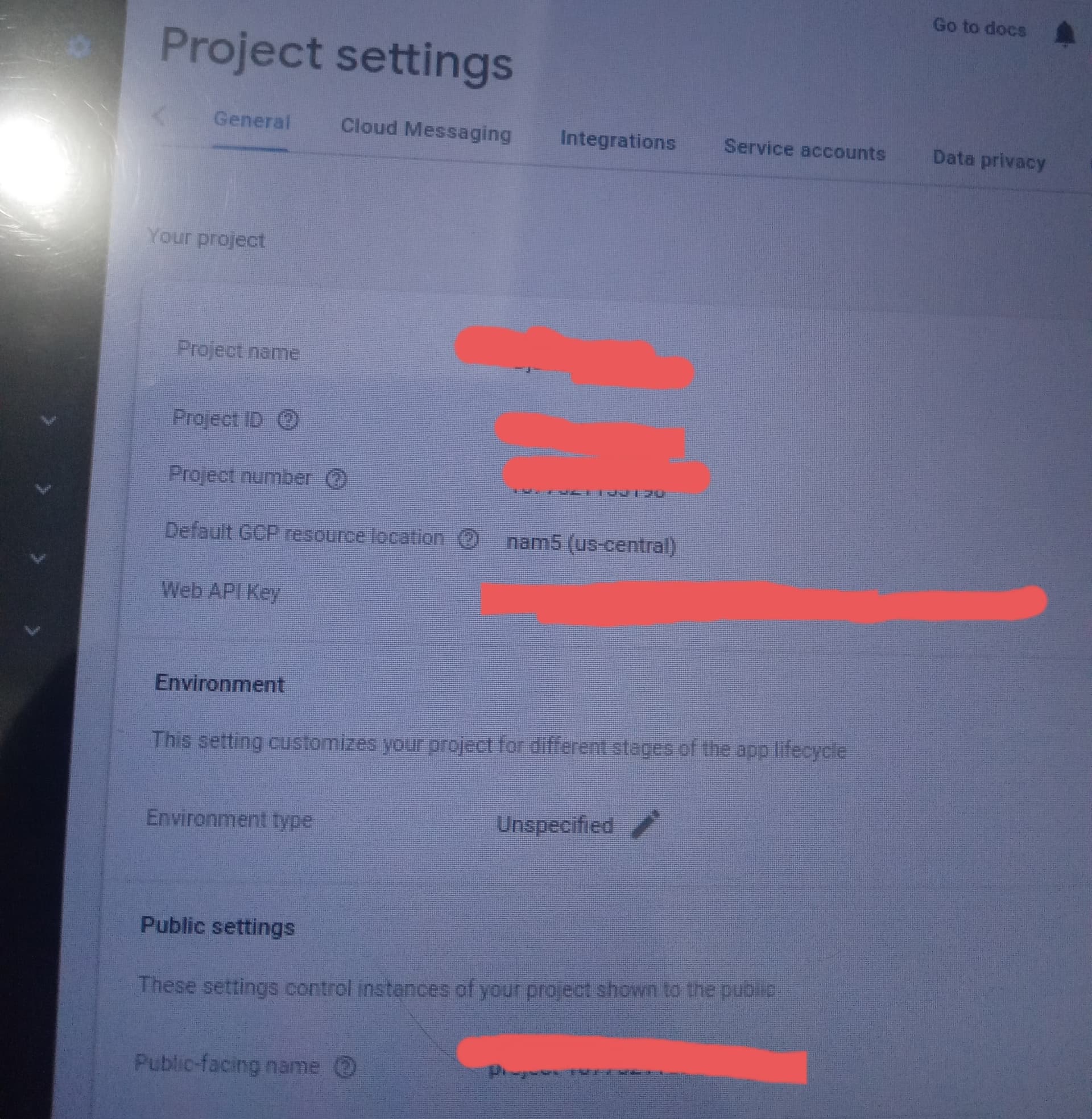 I’ve created a new project, changing the location to us central, but the firebase error message is still there like the picture I sent above