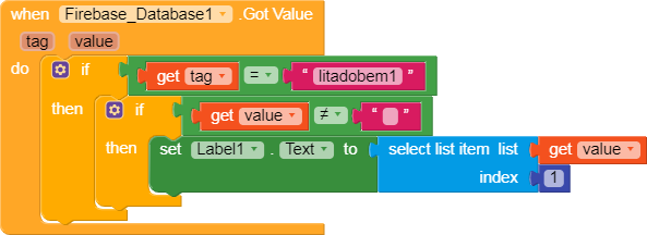 When Firebase Got value > if tag = listadobem1 if this is true > if value is not empty if this is true > them you seletect index.