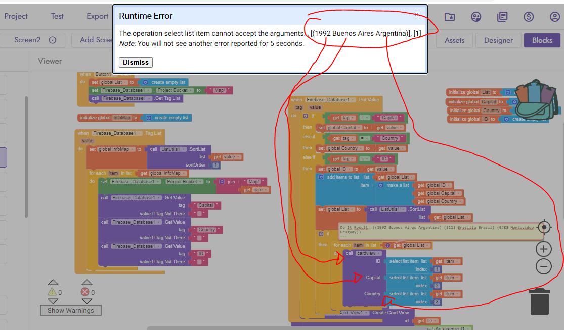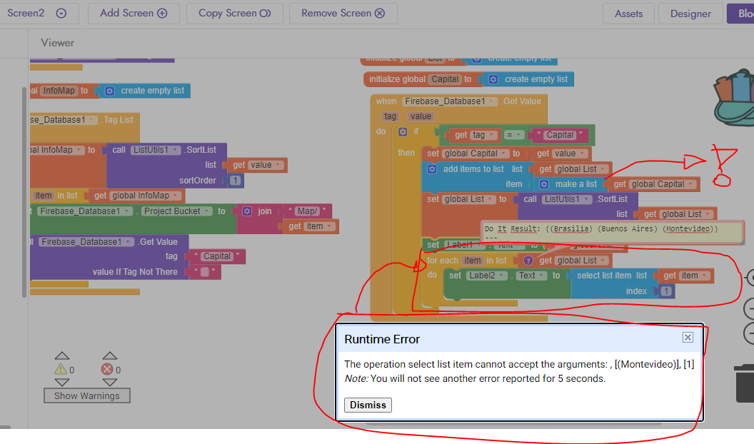 Why are you using for each item loop? Just set label2 text to select list item, list global list, index 1