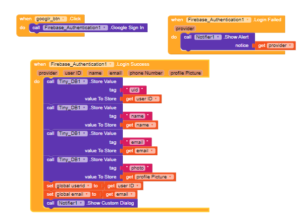 Here is my block of firebase google sign in property.Please give me solution.