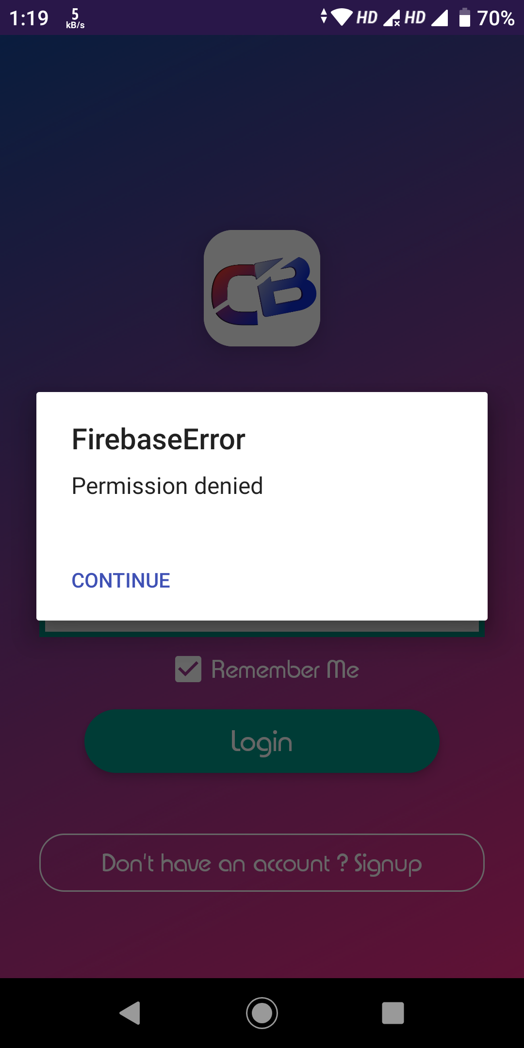 When I sign up and login first time then it’s perfect but when I cut the minimize and open the app again it shows a firebase permission denied