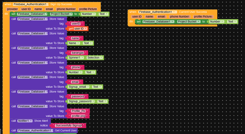 Move all the firebase calling blocks to when current user success just below the oroject bucket
