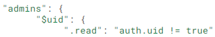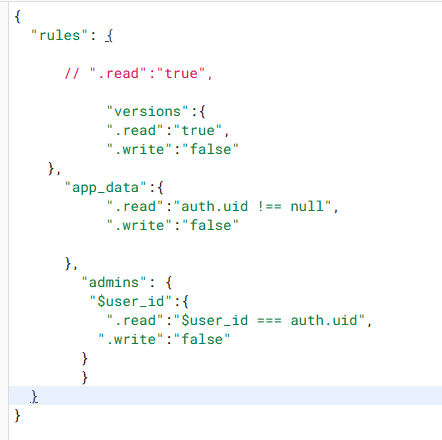 the problem is: only when using ( “.read”:“true”,) to all buckets the app works fine otherwise popup window appears at starting of the app (FirebaseError - Permission denied) when using ( “.read”:“auth.uid !== null”,) rule