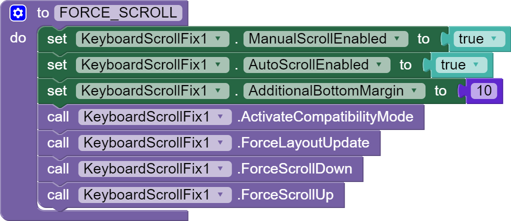 Due to the recent scrolling issues in applications developed with App Inventor versions, including Kodular, I have designed an extension that helps solve this problem. The extension is called KeyboardScrollFix and works by forcing the scroll movement either upward or downward.