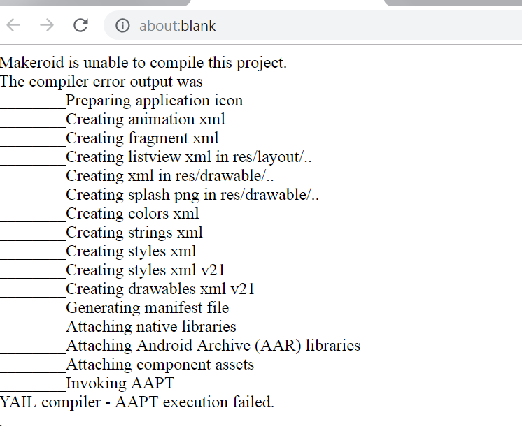 Build failed! Error: Your build failed due to an error in the AAPT stage, not because of an error in your program. Someone cut the power!