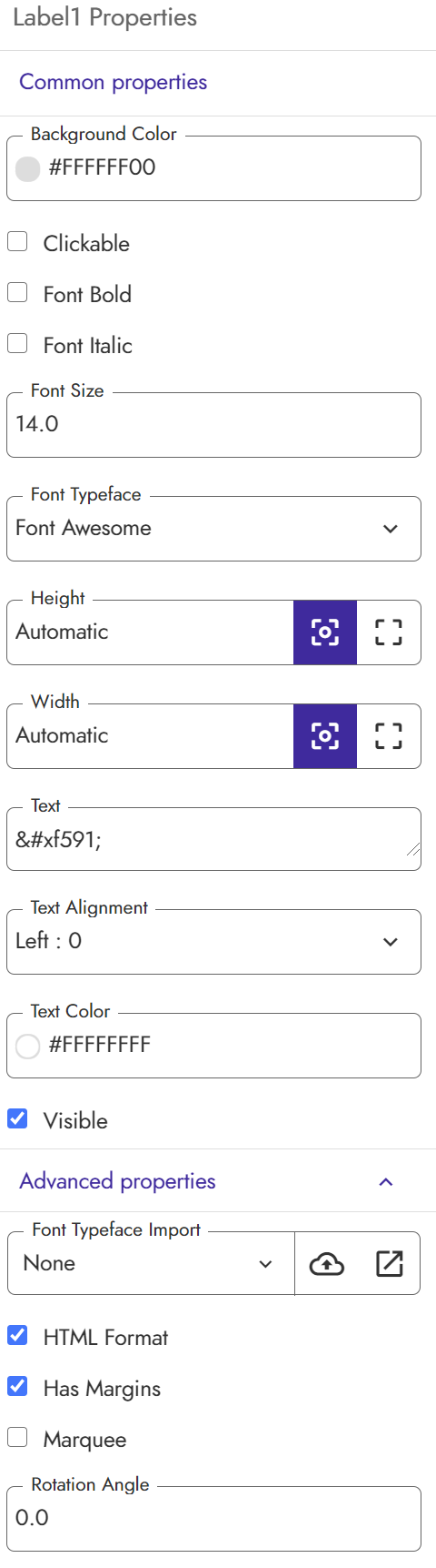 EDIT : reply to myself, the issue is resolved by selecting “Awesome font 5 (Solid)” and not “Awesome Font 5” in the “Font Typeface” property and also copy paste the glyph to the text label property ![]()