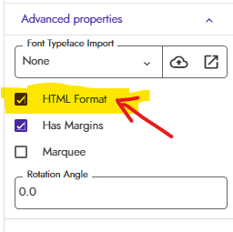 and after that just tick the HTML Format option in the “Advanced Properties” column rather than doing anything in the Block section.