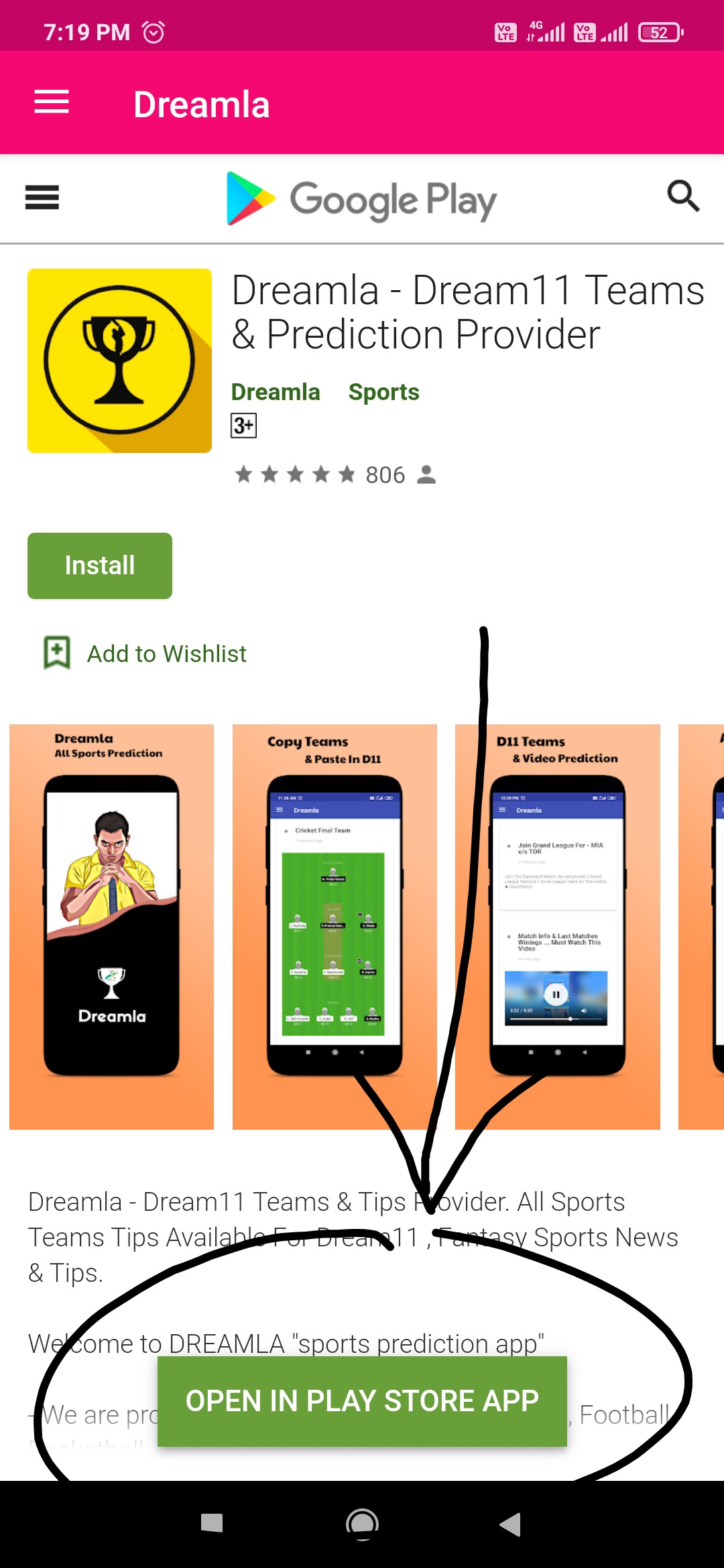 in webview when we click on … share button of whatapp or clik on open in playstore button..