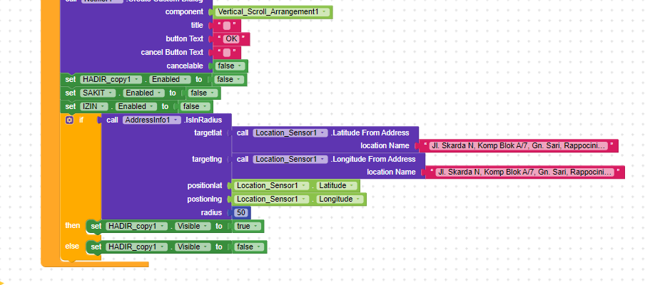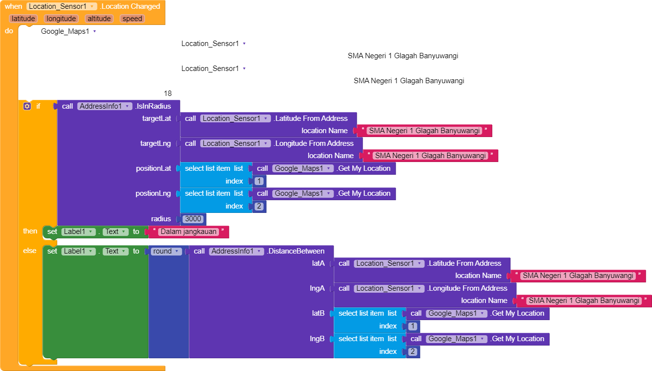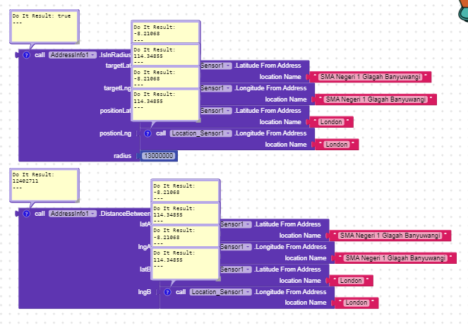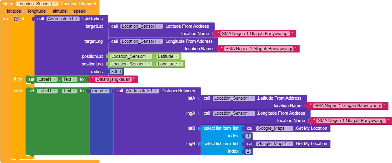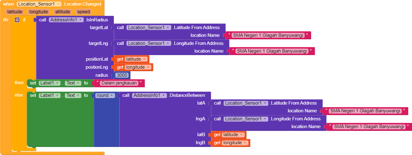 no, it’s just an indicator. if the value is true, it will output the upper String (“Dalam Jangkauan”), if false or not in the radius it will write the distance between 2 points.