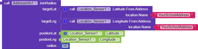 Also you can add the same if then statement in the location changed event (location sensor component ).. so if someone was far from your school then he become nearer the button shows immediately..