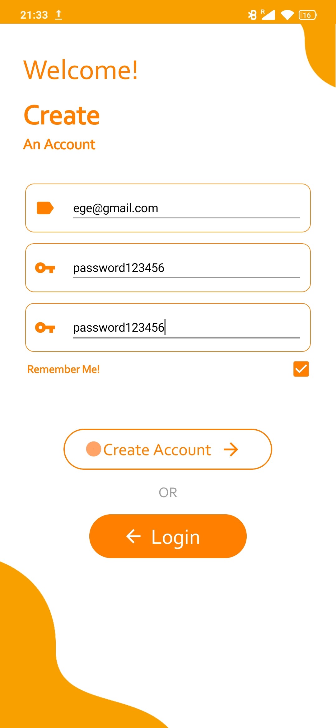 Sign In Screen (Create Account) 2: