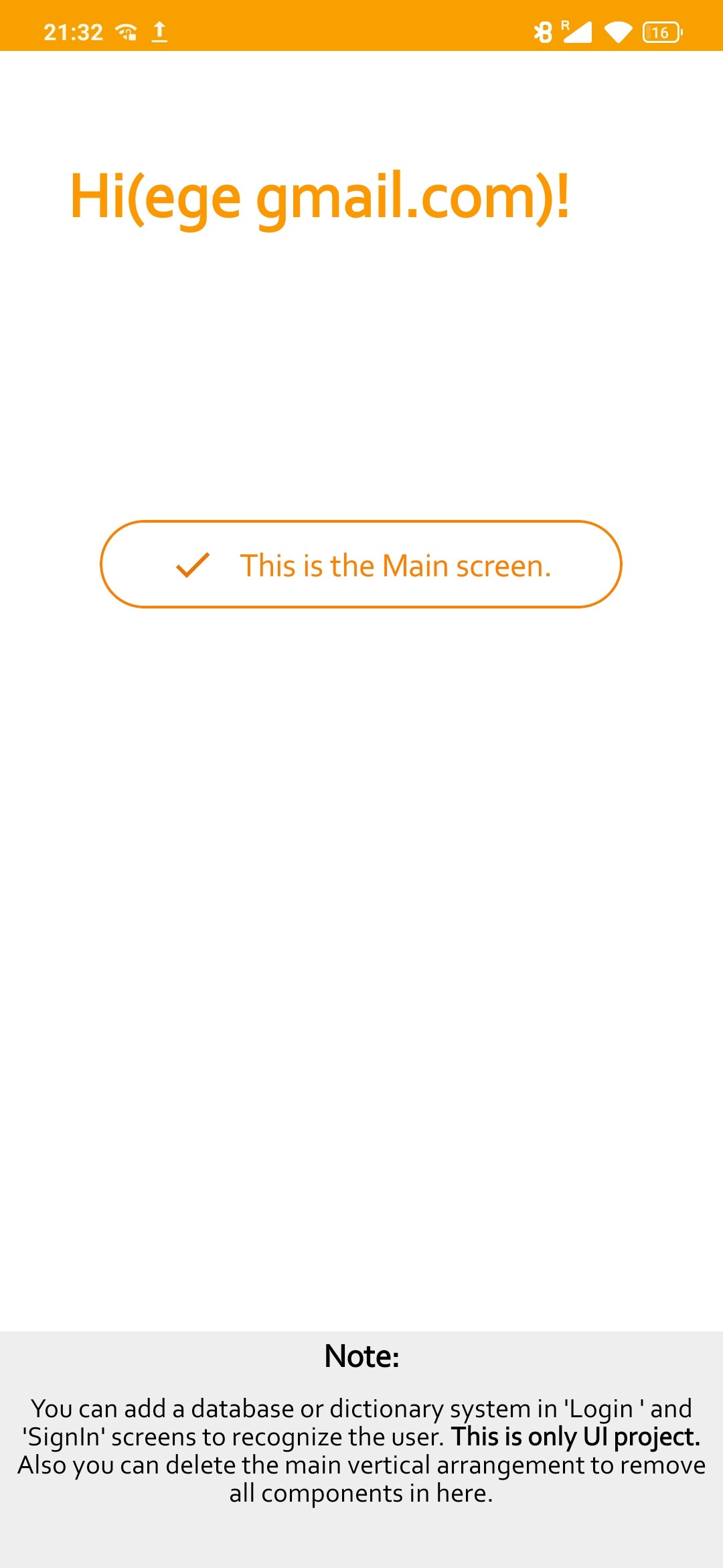 Advice: You can add a database or dictionary system in ‘Login’ and ‘SignIn’ screens to recognize the user correctly.