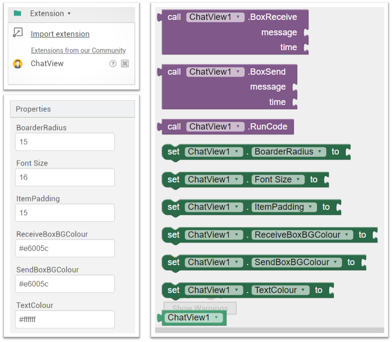 Did you test your extension on Kodular and maybe show some Kodular blocks? I can imagine that there could be a conflict between the chatview component and you extension.