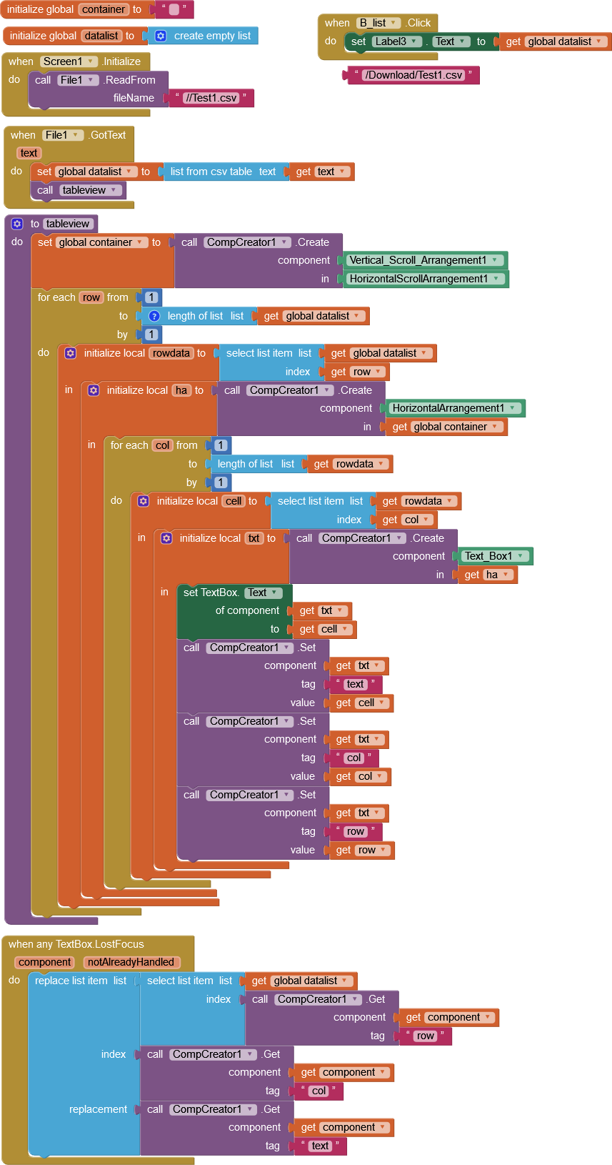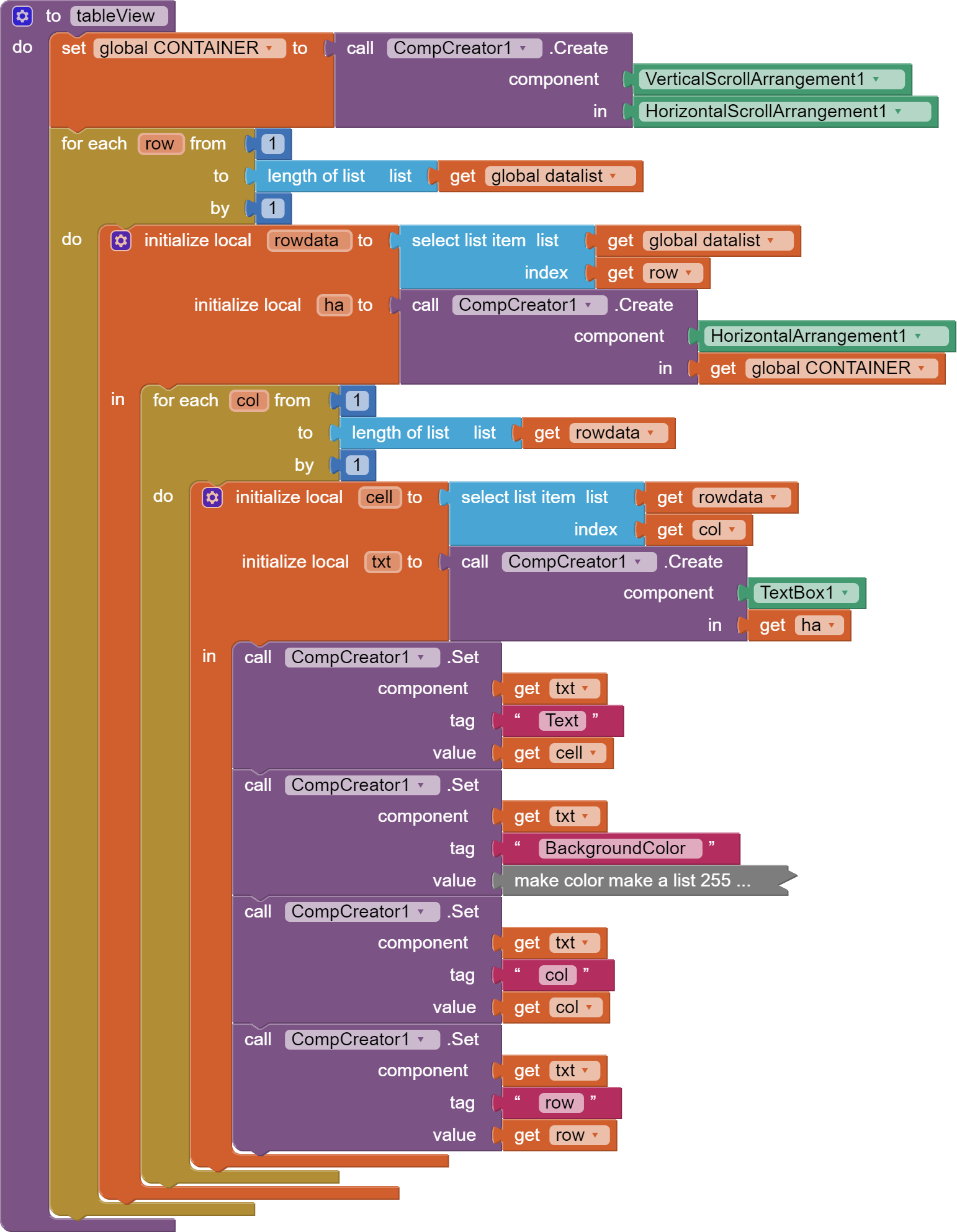 This falls somewhere between an extension and a guide, but probably best placed here. Consider this to be helper blocks which can be used in a bigger app. In essence, the following generates a dynamic table from a data list and uses @Kevinkun's...