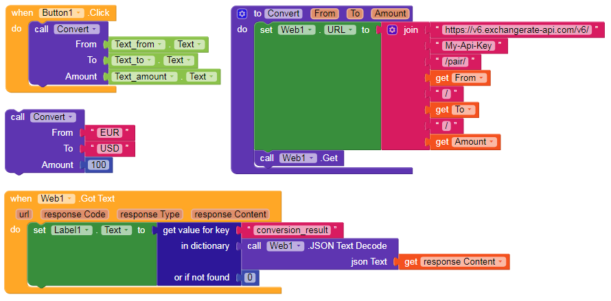 This block get API request result i.e it will respond the exchange rate as you requested.