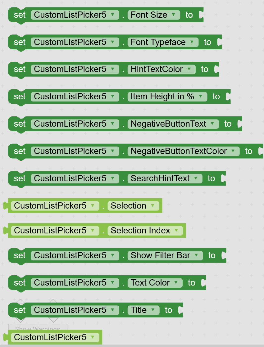 It is different from inbuilt list picker component, list picker component shows list items in a new activity/screen with less customization where custom list picker shows a dialog and you can customize its appearance.
