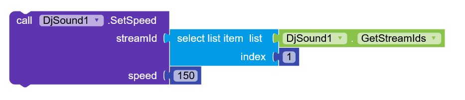 - Example how to set the speed to 150% on a selected soundStream
