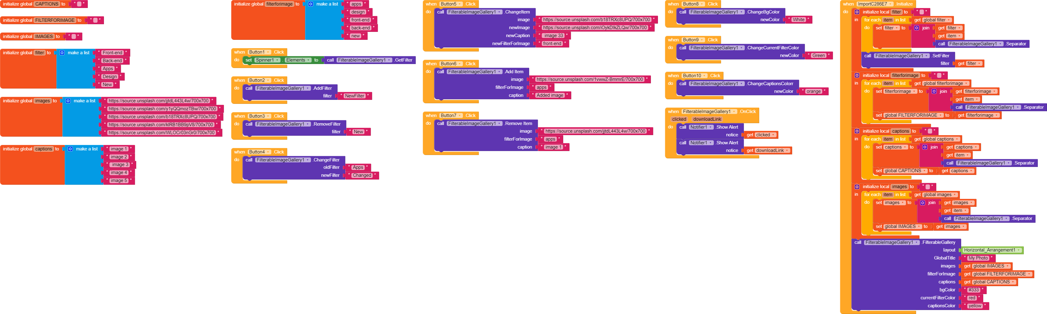 FilterableImageGallery allow to create a gallery of images that can have a filter to easily search.