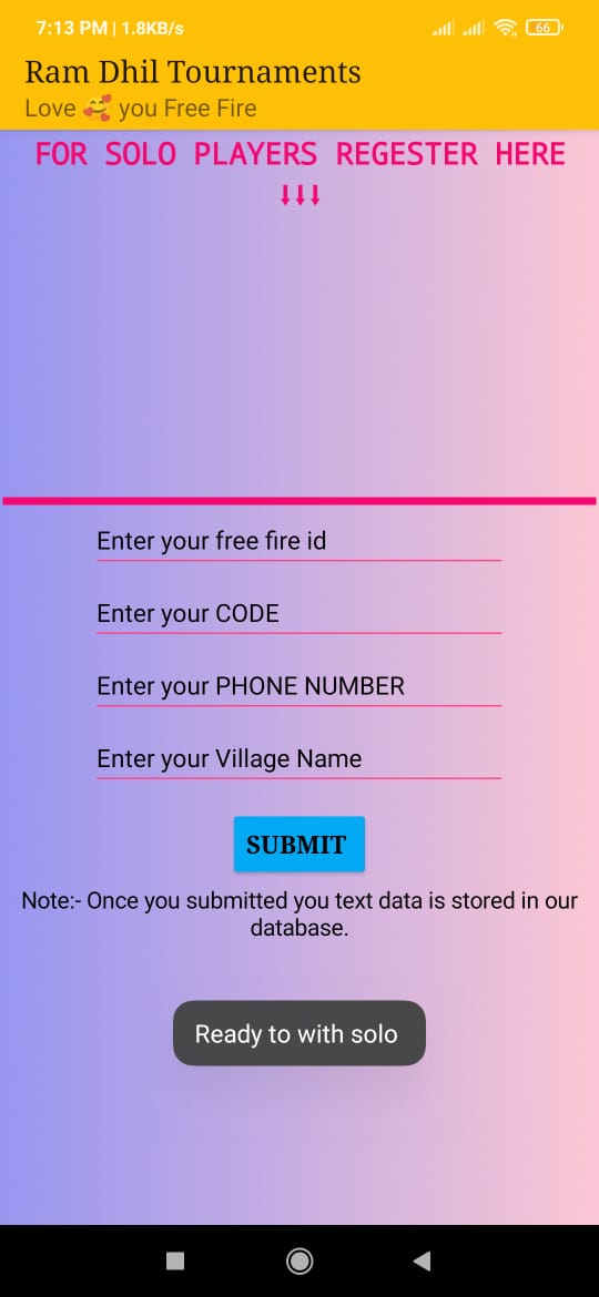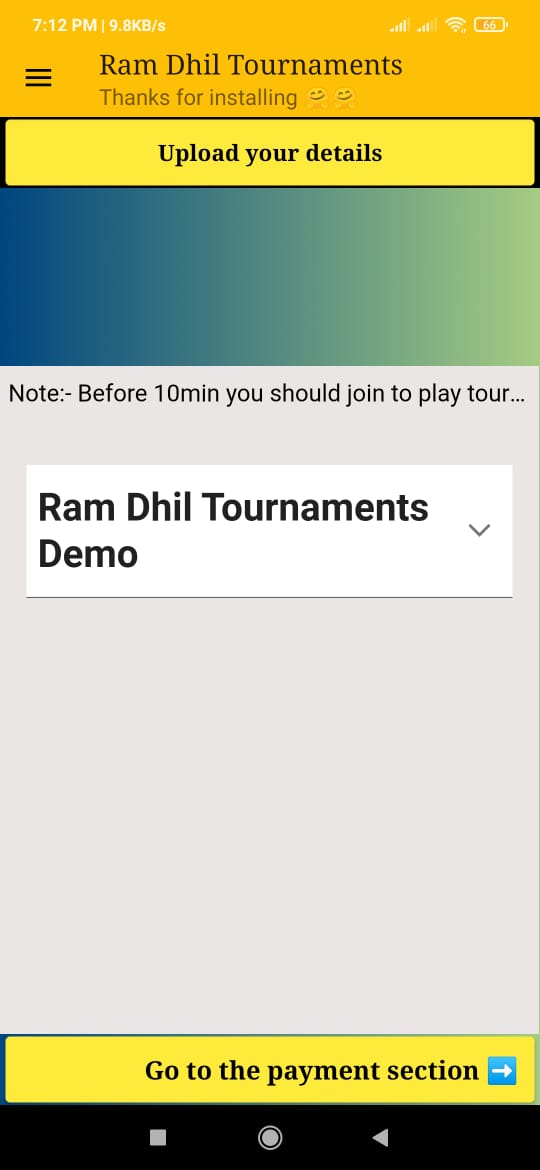 APP NAME :- RAM DHIL TOURNAMENTS.