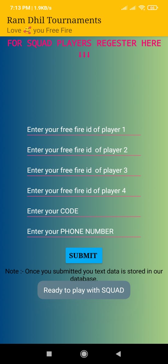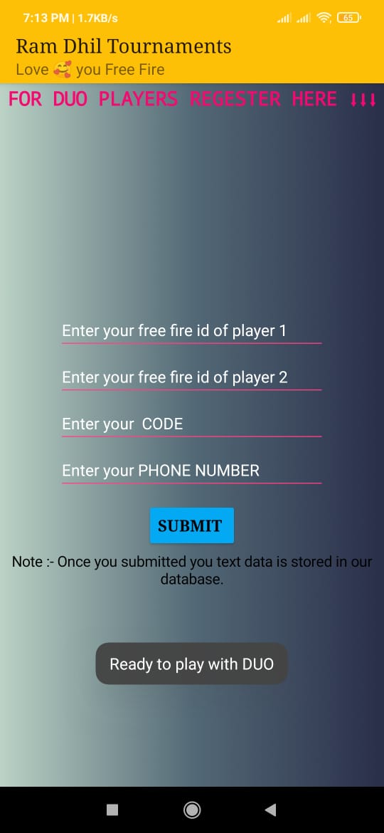 Type of app :- Free Fire Tournament app