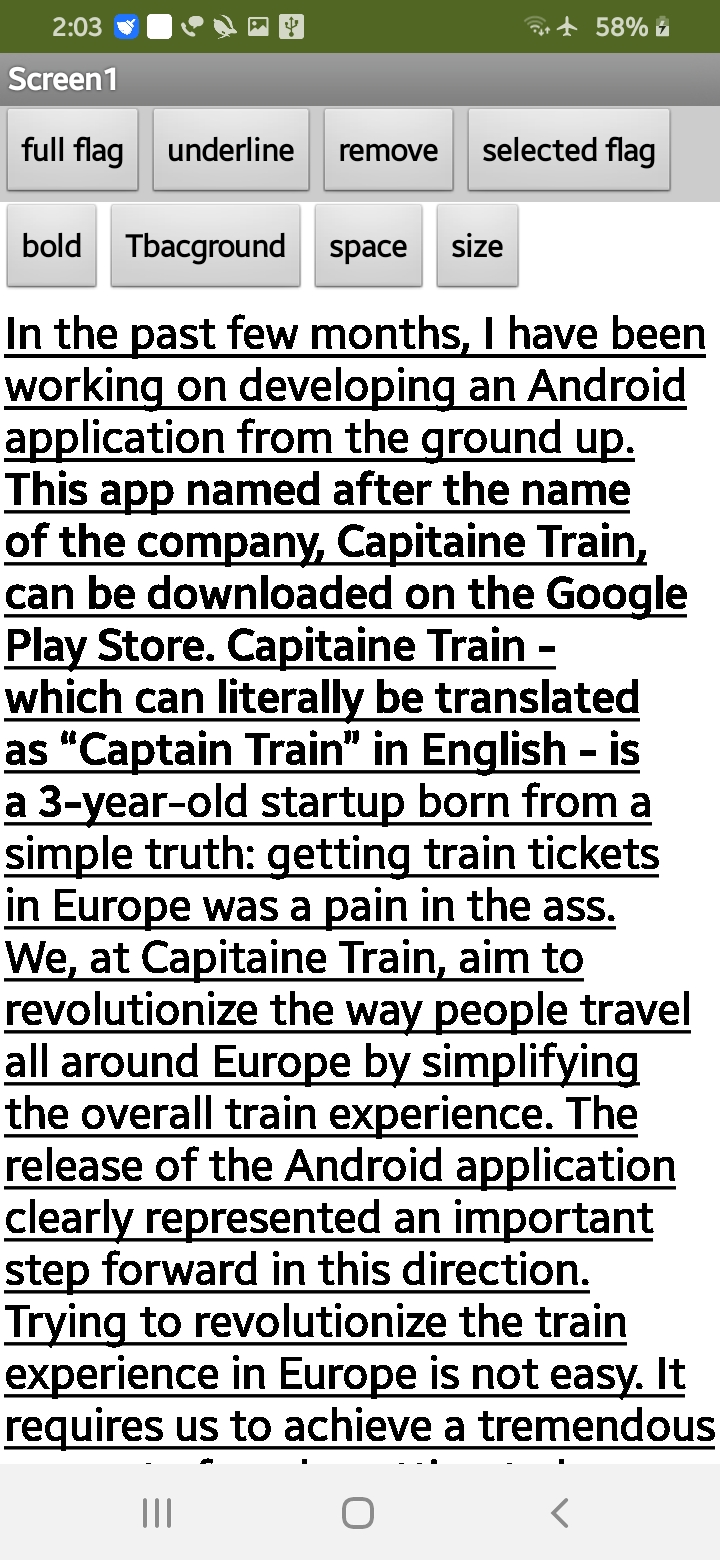 Now u can set font bold/italic, set selected text bacground color, change selected text font size , set line spacing