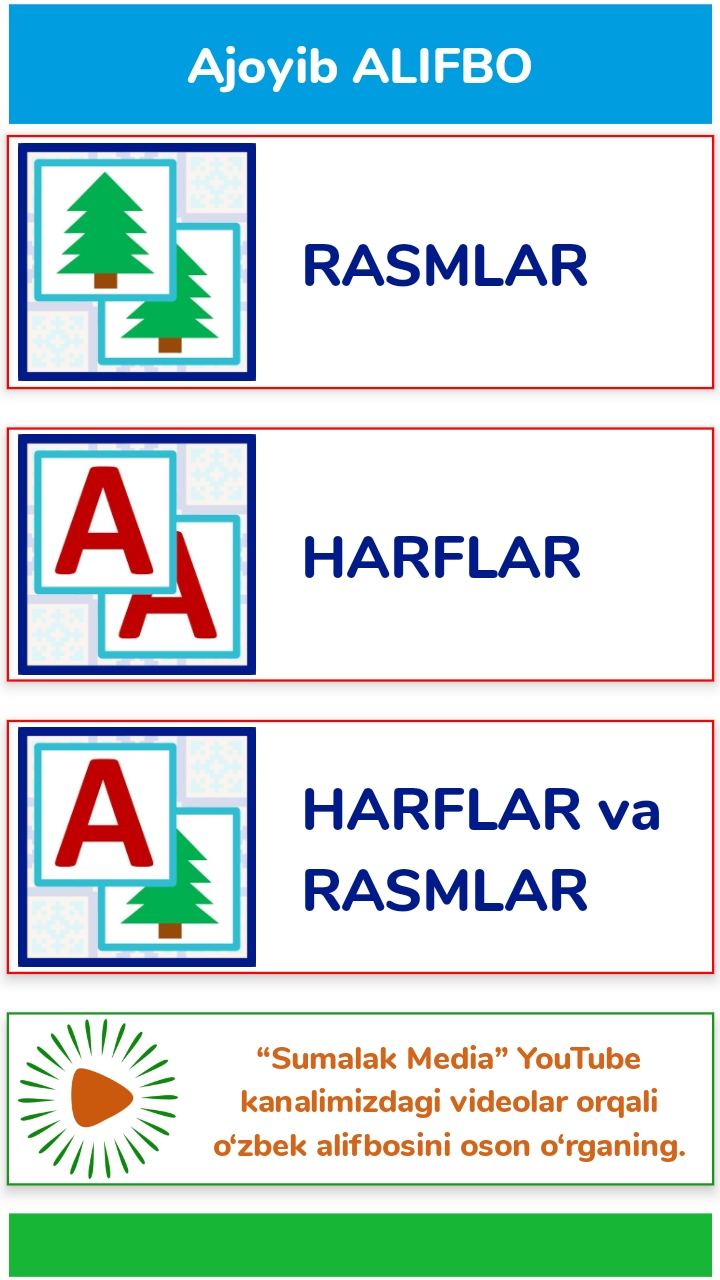 [Free, no Ads] Ajoyib ALIFBO - A Memory game for kids to learn the Uzbek Alphabet