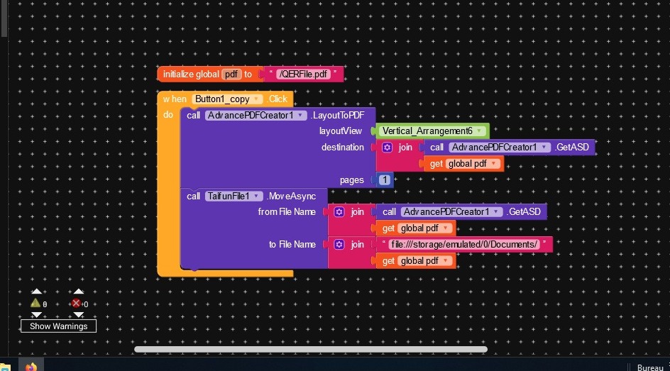 Hi, please help me to create a Pdf file with multipage to stock ASD in Documents Internal Storage.