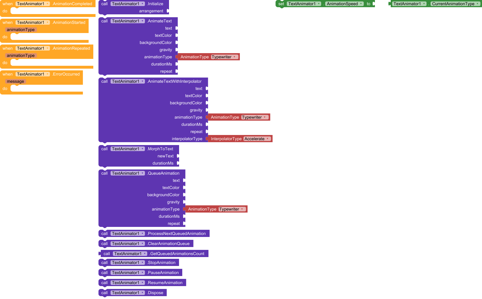 AnimationCompletedEvent: This is your most powerful tool for logic. TheAnimationCompletedevent block triggers after a non-repeating animation finishes. Use it to: