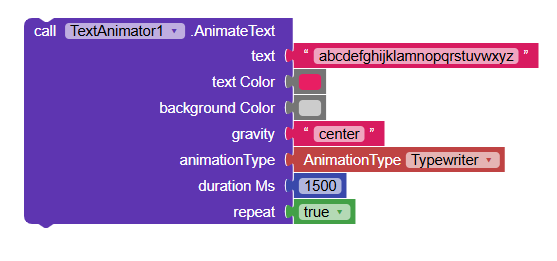 An extension for Kodular/MIT App Inventor 2.Advanced Text Animator with dropdown menus for animation and interpolator types.
