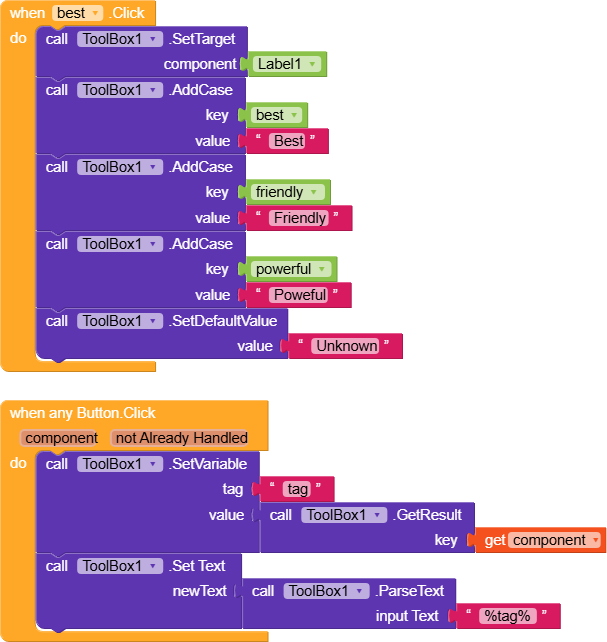 The ToolBox extension is a powerful utility toolkit designed to simplify common app development tasks and enhance user interaction in Kodular projects. With this extension, developers gain access to a versatile set of features, including dynamic text animation, smart variable replacement, and customizable case-result logic—all in one compact component.