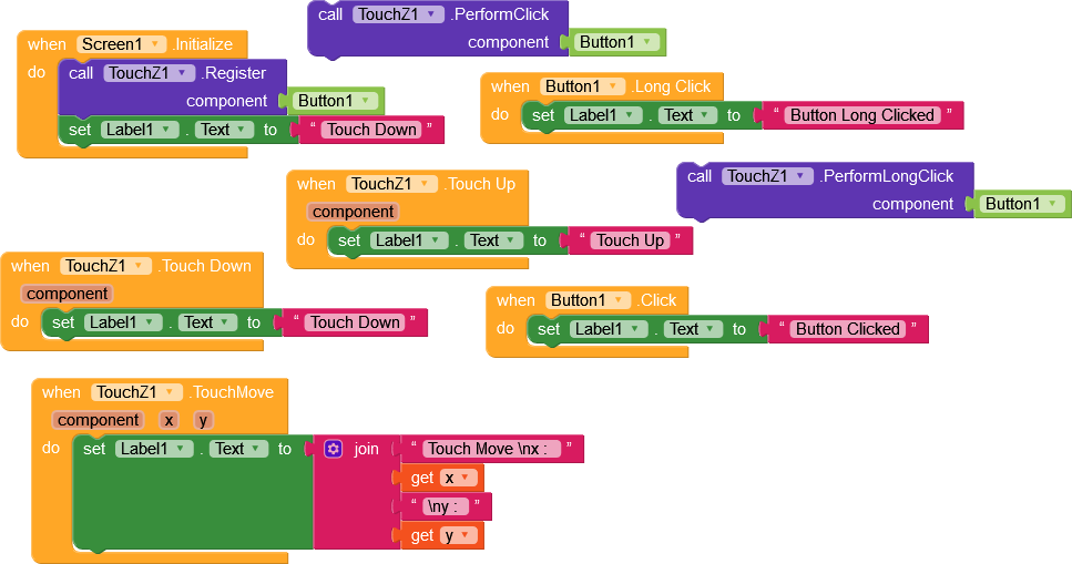 ➜ y output type number 6.PerformClick - Use this block to click any Component programmatically.