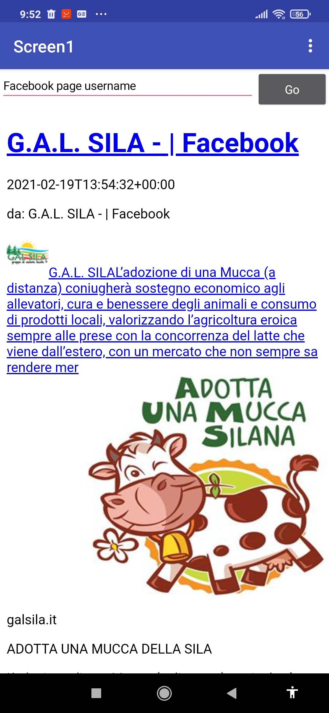 My project to get an html page from facebook page ,my project does not display web page but extracts data from an rss feed