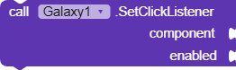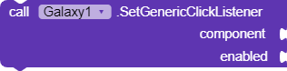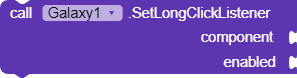 Galaxy provides you with a total of three events and procedures that can toggle if a component is clickable or long clickable. The only reason I came up with this small extension is because long clicking on components you never want to long click on causes your device to vibrate if enabled.