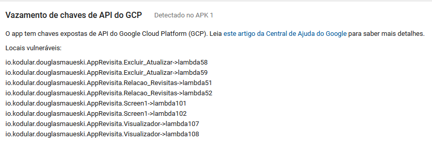 The app has exposed Google Cloud Platform (GCP) API keys. Read this Google Help Center article for more details.