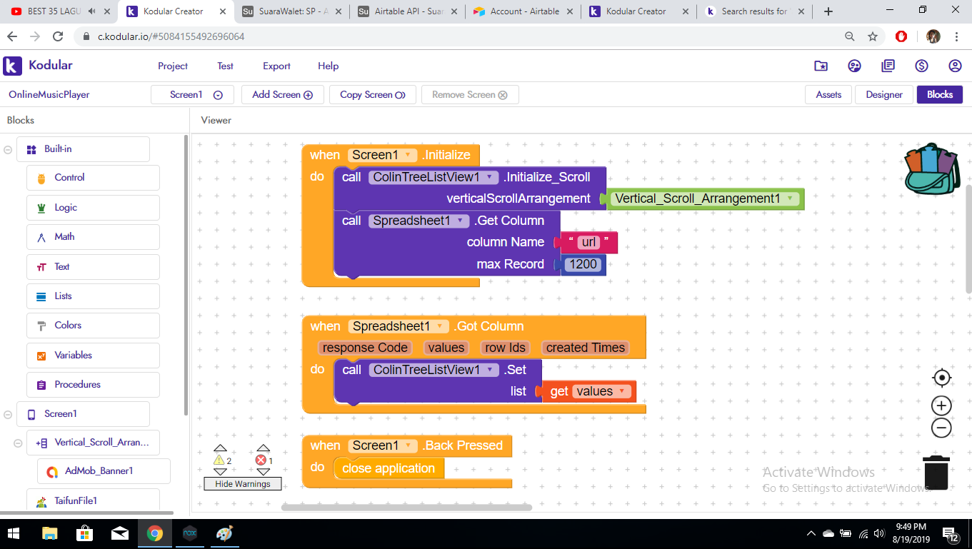in this screen i just call airtable column to show in collintreelistview, i allready try all row too but still not working, i just looking for connection from airtable and kodular, i allready googling for fix it but still not working, checked API,base id and table too…