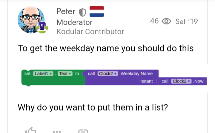 How can I get Name of the Day it is today in Kodular? Clock Component only returns date.