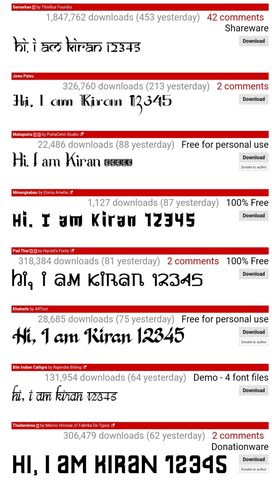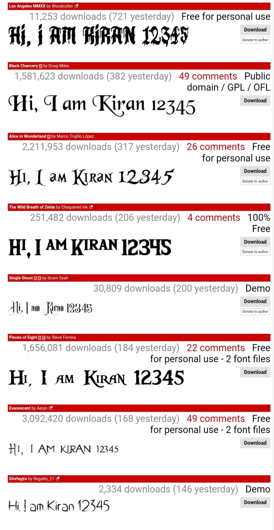 Just goto above site. Select category wise fonts and click on Download