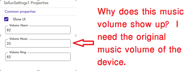 Taifun does not show the original music volume of the device. He shows that I had given value to the music volume.