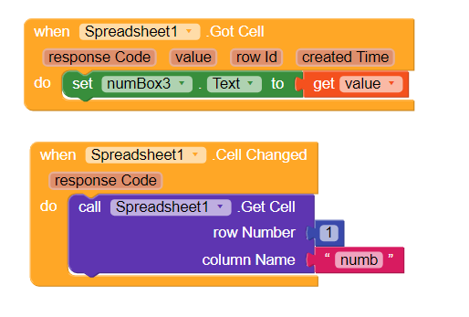 You are changing the numbox2 when you click the button more or less If there was a change, you are recording the value of this numbox2 in the sreadsheet. Take this value in thiis event show it in numbox3.