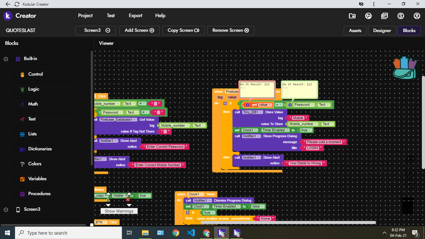 For testing purpose, print the firebase value in a label, and check if your password text and the label text(value) are same or not