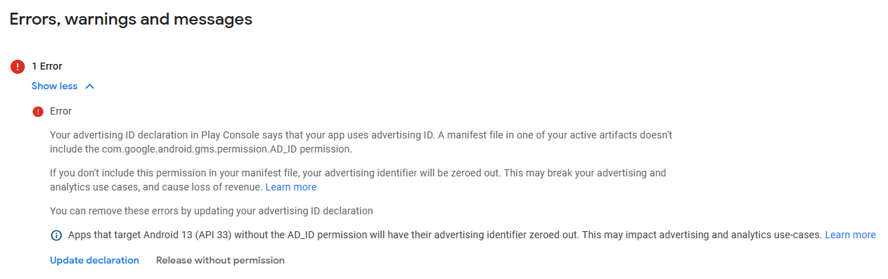 Ad ads were showing earlier in the app but today I tried to upload a new release and then this error came.