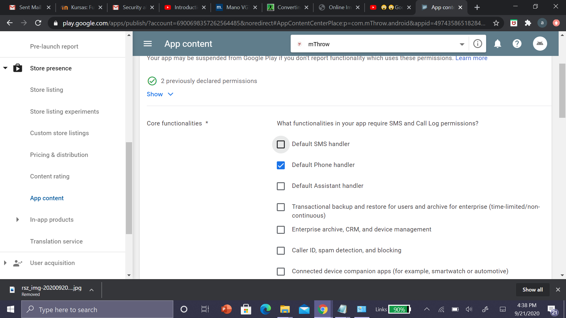 In the above , i dont use send and receive sms permission . How can this be deleted ?