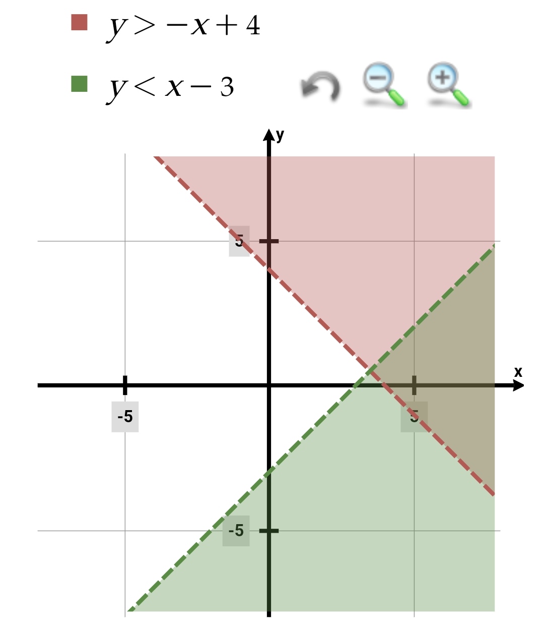 Does anybody know if I can draw two straight lines and draw with solid colour the area of the inequalities (above or below of line)??? I enclose a example of graph.
