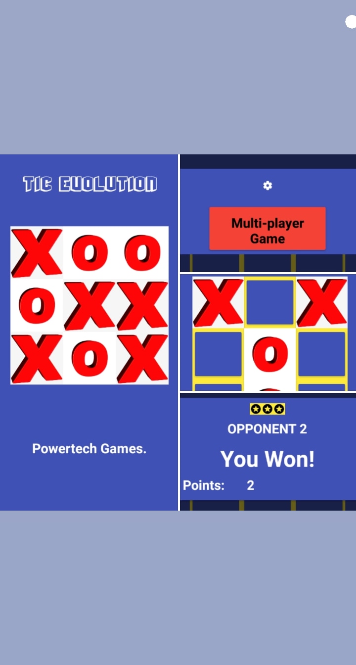 Enjoy the Fabulous Tic Evolution, Play with friends and family. All you need is to enter your Name and your friends name, and you’re set to go. This game improves your thinking capacity, why not try now!.