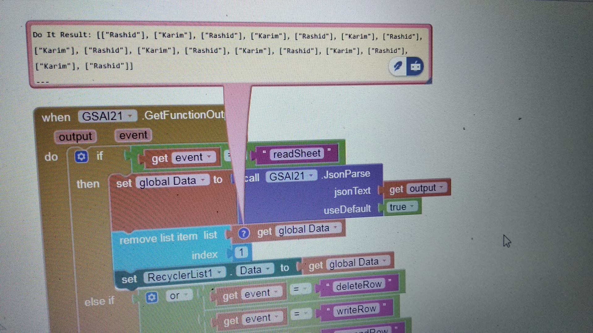 Anyway, I should point out that when you run ReadSheet you’ll get a list of lists, so each element of data will itself be a list (it’s better to use GetColumn if you want to retrieve just a simple list of elements).