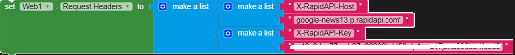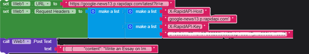 - In the Blocks set Web.URL to the Request URL of the API: